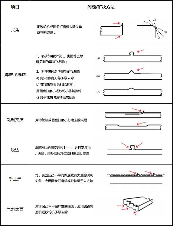 01結(jié)構(gòu)處理:對于底材本身須進行一定的處理,如銳邊打磨、飛濺物去除、焊孔補焊及磨平等等。