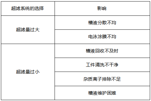 超濾系統(tǒng)在設(shè)計(jì)時(shí)就需要考慮涂裝產(chǎn)能、涂裝物的結(jié)構(gòu)以及槽體大小,根據(jù)條件情況選擇合適的超濾系統(tǒng),不合理的選擇不僅有損槽液及涂膜質(zhì)量,還增加投入成本。
