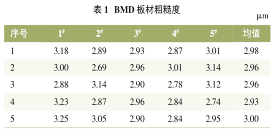 重卡車架采用水洗拋丸板,按Q/JQ16427《BMD板材電泳涂裝技術(shù)要求》,BMD 板材外觀不應有影響電泳涂裝后的外觀質(zhì)量缺陷,不應有影響漆膜附著力的氧化膜,表面粗糙度 Ra(0.8mm測長)要求均值3.0μm,最大值<3.5μm,涂油量5g/㎡?,F(xiàn)場對BMD板材進行外觀檢測,其中粗糙度Ra檢測數(shù)據(jù)見表1。