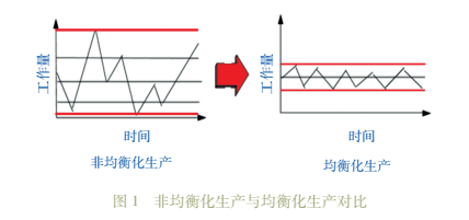 均衡生產(chǎn)是對特定時(shí)間內(nèi)產(chǎn)量以及上線產(chǎn)品組合的整體分配,在計(jì)劃生產(chǎn)時(shí),我們需要在較短的時(shí)間內(nèi)平復(fù)生產(chǎn)的高峰和低谷,見圖 1。