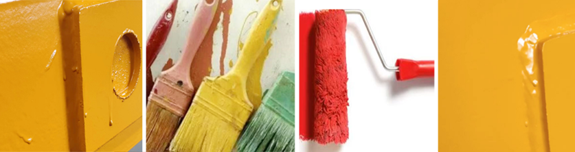 濕膜狀態(tài)下的流掛缺陷 >> 刷涂缺陷處毛刷工具 >> 滾涂缺陷處滾筒工具 >> 經(jīng)過刷涂修復(fù)后漆膜效果