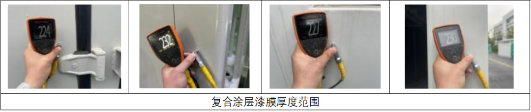 2.  ISO12944 技術(shù)標(biāo)準(zhǔn) C4 要求:環(huán)氧底漆 150 μm(現(xiàn)場(chǎng)實(shí)際噴涂膜厚約 170 μm),二次成膜單槍干膜厚度約 100 μm(涂層間隔約 10min),單次成膜厚度>200 μm(一次成膜底部起槍一上一下須達(dá)到漆膜厚度);聚氨酯面漆 50 μm(現(xiàn)場(chǎng)實(shí)際噴涂厚度 40-60 μm),一次成膜底部起槍一上一下須達(dá)到漆膜厚度;